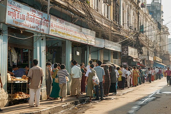 Yangon Bakery Hires Retired Generals to Enforce Queue Discipline During Morning Rush